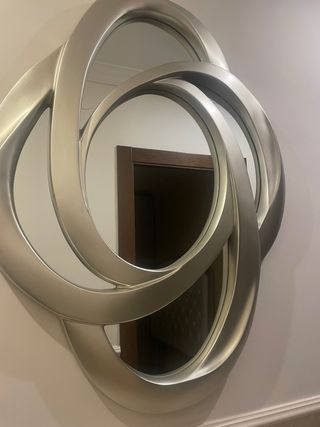 Elegante espejo con un diseño moderno y llamativo, perfecto para dar un toque especial a tu recibidor o cualquier estancia. - Marco con acabado plateado. - Diseño entrelazado. - Ideal para recibidores. ✅OFERTA ESPEJO+ MESA 149€✅