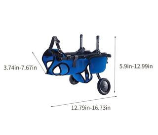 Carrito auxiliar para perros con estructura de soporte y ruedas. - Arnés de sujeción. - Ruedas de fácil manejo. - Material de malla transpirable.