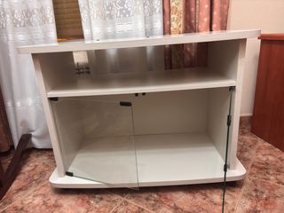 Mueble TV blanco con puertas de cristal