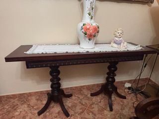 Mesa de madera con adorno de cerámica