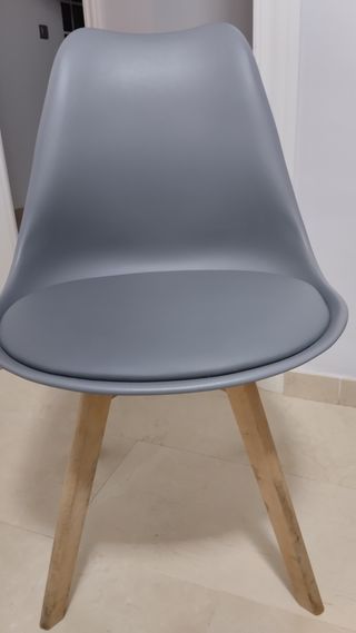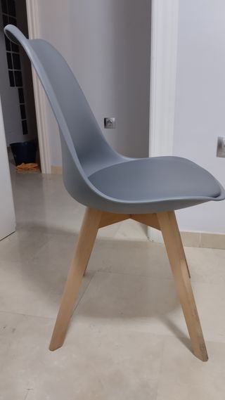 Tres Sillas modernas grises de plástico y madera
