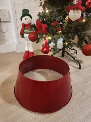Base para árbol de Navidad. Medidas: - Circunferencia superior: 28 cm - Circunferencia inferior (base): 38 cm - Altura: 16 cm La vendo porque no le queda a mi arbolito. Solo entrega a mano en Torrejón de Ardoz.
