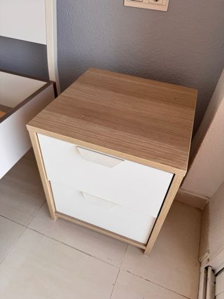 Se vende dormitorio completo con dos camas individuales 90 x 190 cm y dos colchones anchos de misma medida. También mesilla moderna de 53cm de alto x 43 de ancho. - Dos camas de 90 x 190cm - Dos colchones. - Mesita de noche con cajones.