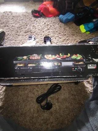 Parrilla eléctrica con una potencia de 1200W. Precio negociable - Superficie de cocción antiadherente. - Control de temperatura ajustable. - Bandeja recogegrasas extraíble.