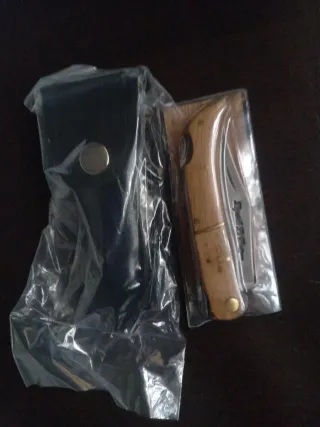 Navaja Laguiole con detalles en bronce y mango de madera. Se encuentra en perfecto estado, nueva a estrenar - hoja acero de 10 cm inoxidable - Mango de madera.12 cm. - Detalles en bronce.