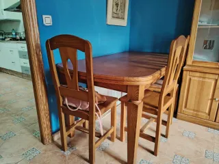 Mesa de comedor de madera extensible. Medidas cerradas 120x80 Medidas abierta 170x80 Se entrega con dos sillas