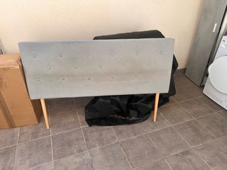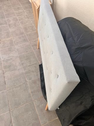 Cabecero de cama de 150 cm con un diseño moderno y elegante. - 6 meses de uso - Necesita una limpieza de ahi su precio rebajado - Tapizado en tela de color gris. - Patas de madera para fácil instalación. - Acolchado con botones decorativos.