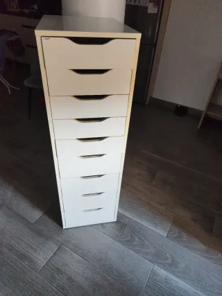 Cajonera de la marca Ikea en color blanco. Cuenta con múltiples cajones para almacenamiento. - Diseño moderno y funcional. - Ideal para organizar espacios.
