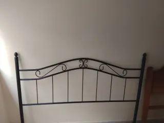 Elegante cabezal de cama con un diseño clásico y detalles ornamentales. - Fabricado en metal resistente. - Acabado en color negro. - Diseño curvo con adornos. - Estructura de barrotes verticales.