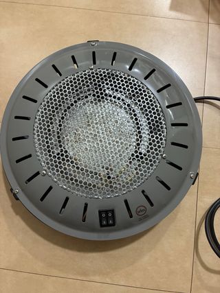 Brasero eléctrico HJM con un diseño circular y moderno. - Rejilla protectora de metal. - Interruptores de encendido/apagado. - Carcasa exterior de metal.
