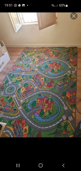 Alfombra de juegos para niños con un diseño de ciudad y carreteras. - Diseño de ciudad con carreteras, casas y ríos. - Ideal para crear un espacio de juego interactivo. - Material de tela resistente y suave.