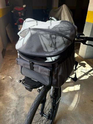 Vendo transportín para perro o gato para bicicleta o llevarlo también como bolso. Está nuevo, solo se ha usado 3 veces para llevar a un cachorro en el coche. Peso máximo 6kg.
