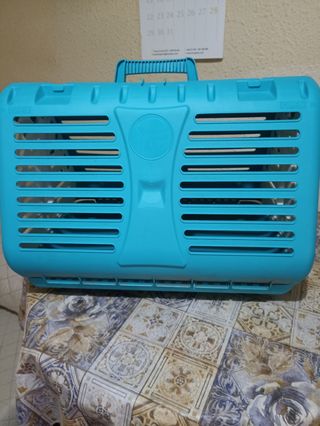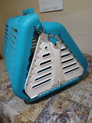 Transportín para mascotas pequeñas, ideal para viajes o visitas al veterinario. Su diseño permite una buena ventilación y un fácil desmontaje para facilitar su limpieza. - Asa superior para colodidad en el transporte. - Cierre seguro en los laterales. - Rejillas frontal y laterales para ventilación. - El espacio interior es de 30x25. - Está impecable, sólo se usó una vez.