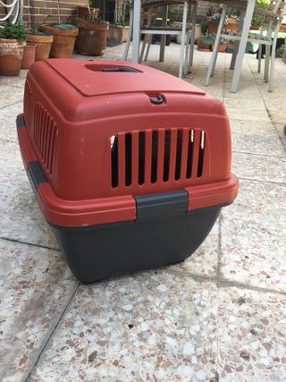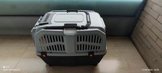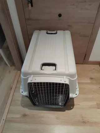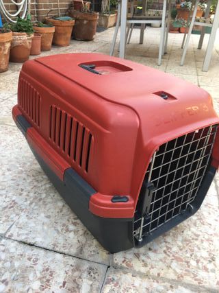 - Jaula de transporte para mascotas de hasta 15kg, modelo Clipper 3. - Como nuevo. - Fabricado en plástico resistente. - Cumple normativa IATA para transporte aéreo. - Puerta metálica con cierre de seguridad - Dimensiones: 64 x 43 x 43 cm. - Ventilación en los laterales. - Asa de transporte y ganchos para sujetar en el coche.