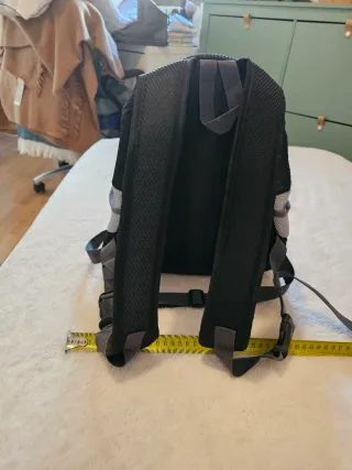 Mochila transportín para perros y gatos con un diseño moderno y funcional. Permite llevar a tu mascota de forma segura y cómoda. Nuevo, sin uso. El frontal sigue con su plástico protector - Ventilación a través de agujeros. - Parte trasera acolchada para mayor confort. - Bolsillo lateral de malla. Tamaño aproximado Alto 43cm Largo 37cm Ancho 27cm
