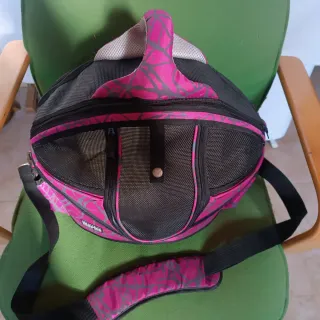 Transportín de tela diseñado para perros o gatos de tamaño pequeño. Cuenta con un diseño divertido y colorido. - Ventana de malla para ventilación. - Asas de transporte cómodas. - Cierre de seguridad en las asas. Ha sido un regalo y no se ha usado. NUEVO.