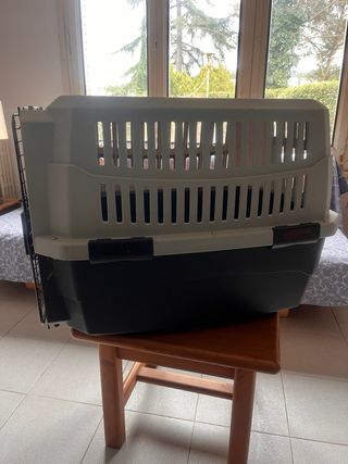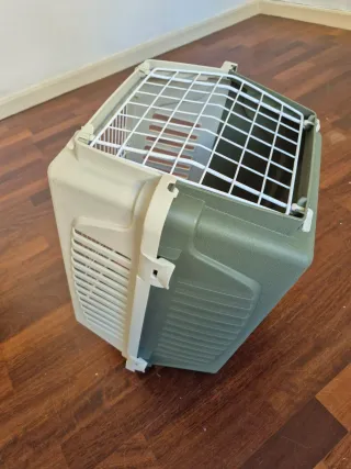 Transportín rígido para mascotas. Ideal para viajes y desplazamientos. Cumple con las dimensiones de AVE para viajar con animales. - Diseño robusto y seguro. - Ventilación adecuada para el animal. - Puerta con cierre de seguridad. Lo hemos usado en 3-4 ocasiones porque en seguida se nos quedo pequeño.