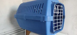 Transportín para mascotas de hasta 20 kg. Usado solo una vez.. Ideal para viajes o visitas al veterinario. - Diseño robusto y seguro. - Puerta metálica con cierre. - Base interior con rejilla. - Asa superior para fácil transporte.