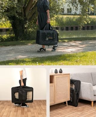 Transportín para Perros/gatos. Bolsa transportín para mascotas plegable Autobox 60x42x44 cm Negro medidas plegado 60x42x15