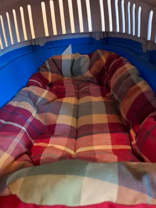 Transportín plegable para mascotas, ideal para viajes o como espacio seguro en casa. Su diseño permite un fácil montaje y desmontaje. Usado dos veces. - Material resistente y transpirable. - Dos asas para un transporte cómodo. - Cierre de cremallera seguro. -Ventilación. - Montaje y desmontaje rápido.