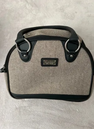 Bolso transportín con un diseño elegante, ideal para llevar a tu mascota contigo. Presenta un estampado de espiga en tonos beige y negro. - Asa superior de cuero negro. - Detalle de anillas metálicas en los laterales. - Placa metálica con el logo de la marca en la parte frontal. - Hasta 4 kg