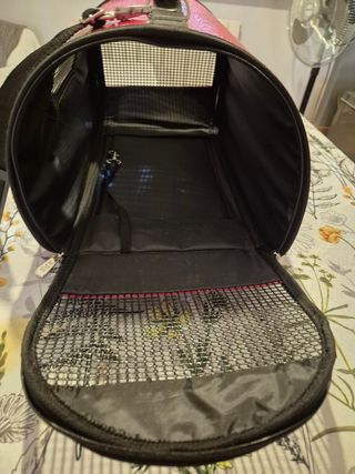 Transportin para perros o gatos. Es muy ligero, pesa lo que una mochila de deporte. Tiene un pequeño agarre por dentro para que vayan seguros. Ideal para transporte público por lo cómodo que es. Lo vendo porque se ha quedado pequeño para mí perra. Siempre ha viajado en él muy cómoda.