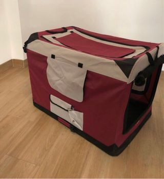 Se vende transportin perfecto para viajes, interior con colchoneta de imitacion borrego de tamaño alto y profundo 50cm y ancho 70cm, se monta y desmonta en menos de 1 minuto, es desmontable para lavarlo, sin apenas uso, a mi perro nunca le gusto meterse, además es bastante ligero 3kg. No negociable