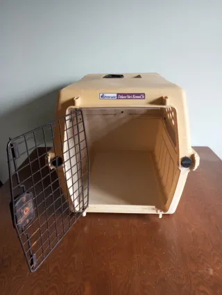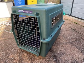 Transportín para perros de la marca Vari Kennel, tamaño L. Ideal para viajes y transporte seguro de tu mascota. - Diseño robusto y duradero. - Ventilación adecuada para el confort del animal. - Puerta metálica con cierre seguro. - Está prácticamente nuevo, sólo se ha usado en una vez