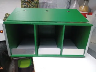 Transportín para 3 jaulas, hecho de contrachapado de 7 m/m y pintado de verde