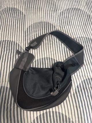 Práctica bolsa para transportar a tu mascota de forma segura y cómoda. Ideal para perros pequeños o gatos. - Correa ajustable para el hombro. - Malla transpirable para ventilación. - Cierre de seguridad.