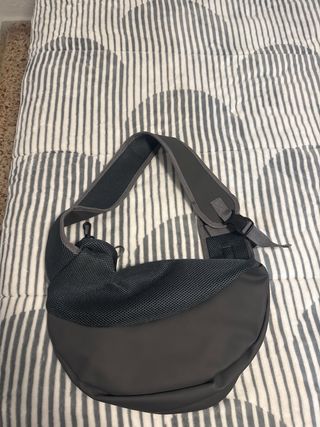 Transportín para mascotas en tonos beige y gris. Está en muy buen estado. - Ideal para viajes con tu mascota. - Práctico y fácil de transportar. - Diseño ligero y resistente.
