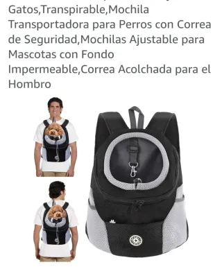 Mochila diseñada para transportar mascotas de forma cómoda y segura. Ideal para llevar a tu perro o gato contigo. - Confeccionada en malla transpirable. - Abertura frontal para la cabeza de la mascota. - Correas ajustables para los hombros. talla L