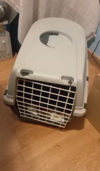 Transportín para mascotas, ideal para gatos o perros pequeños. Cuenta con una puerta de rejilla metálica y ventilación en los laterales. 35/60/40 Solo recogida en persona.