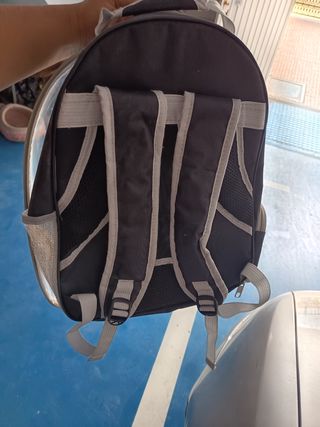 Transportín para perros o gatos, ideal para viajes. - Malla transpirable para ventilación. - Bolsillo frontal con cremallera. - Asas de transporte resistentes. -Correas para llevar como mochila Utilizada un par de veces. Precio en tienda 47 euros