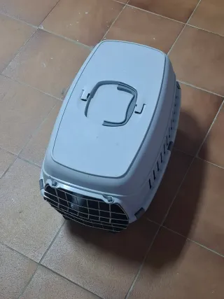 Transportín para mascotas en muy buen estado, ideal para viajes o visitas al veterinario. Su diseño permite una buena ventilación y seguridad. - Asa superior para un fácil agarre. - Puerta de rejilla metálica. - Parte de arriba extraíble