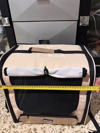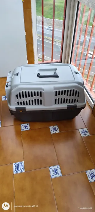 Transportín de gran tamaño y construcción sólida, ideal para viajes o desplazamientos con mascotas. - Diseño ventilado para mayor comodidad. - Base resistente y duradera. Solo se ha usado tres veces.