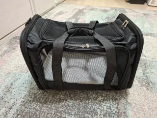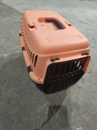 Transportín para gatos o perros pequeños. Ideal para viajes o visitas al veterinario. - Diseño práctico y seguro. - Asa superior para fácil transporte. - Rejilla frontal metálica para ventilación. - Usado 4 veces.