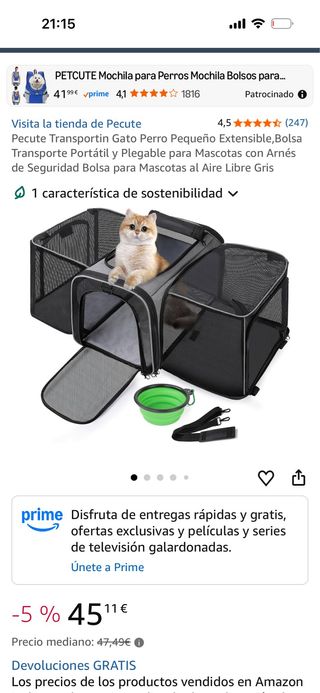 Se venden dos transportines para mascotas, uno de color azul y blanco y otro beige y marrón. Son ideales para viajar con tu animal. - Transportín superior de plástico y rejilla metálica. - Transportín inferior de plástico y rejilla metálica. MEDIDAS DEL GRANDE (20€): -Alto: 36cm -Ancho: 34cm -Fondo: 56cm MEDIDAS DEL PEQUEÑO (10€): -Alto: 25cm -Ancho: 26cm -Fondo: 44cm Arenero desmontable de regalo, todo limpio y esterelizado.