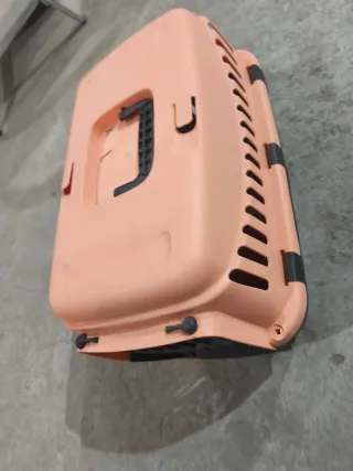 Transportín para mascotas pequeñas, ideal para viajes o visitas al veterinario. Su diseño permite una buena ventilación y un fácil desmontaje para facilitar su limpieza. - Asa superior para colodidad en el transporte. - Cierre seguro en los laterales. - Rejillas frontal y laterales para ventilación. - El espacio interior es de 30x25. - Está impecable, sólo se usó una vez.