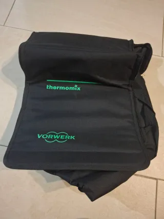 Funda protectora para tu Thermomix de la marca Vorwerk. - Color negro. - Logo de Thermomix y Vorwerk en verde.