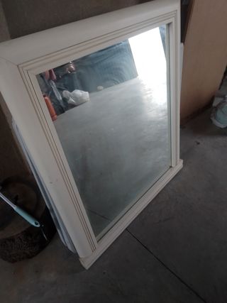 Espejo de madera maciza en perfectas condiciones color beige.Tengo en cabecero de 90 a juego.