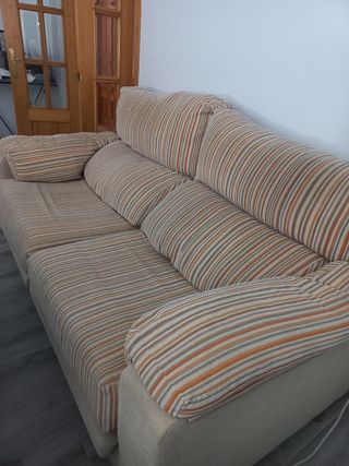 Sofá de 3 plazas con asientos extensibles y reposa cabeza con varias posiciones de inclinación. Estado aceptable