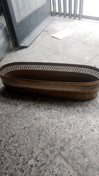 Mesita de metal patinada ,antigua con dos niveles para macetas o accesorios.