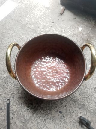 Caldero de cobre con asas de metal,bateado a mano.Patinado para no limpiar.