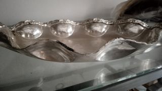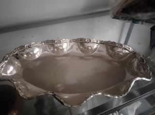 Bandeja en forma de conchena de alpaca bañada en plata.