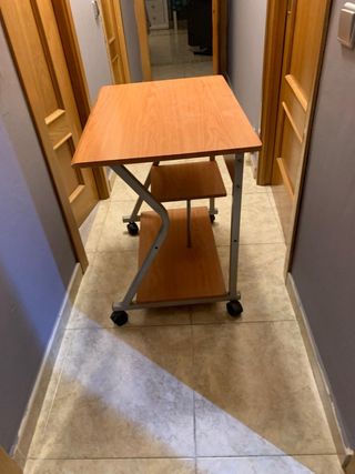 Mesa auxiliar con ruedas, ideal para colocar el ordenador o como mesa de apoyo. - Tablero superior de madera. - Estructura metálica. - Ruedas para fácil movilidad. se puede mover la parte de arriba para colocar impresora. A recoger en Laguna de Duero