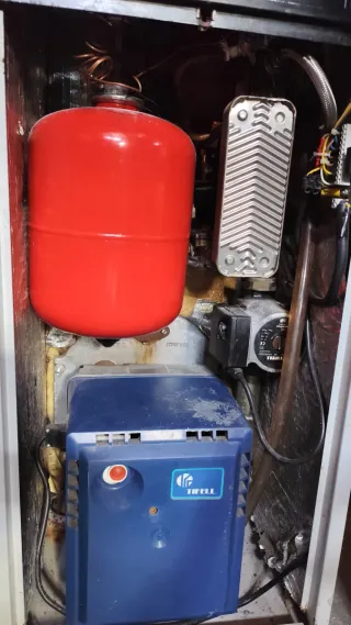 Caldera de gasoil Tifell modelo TGK-I. Retirada funcionando en septiembre 2025. Depósito de expansión cambiado en invierno 2024 junto con purgadores.