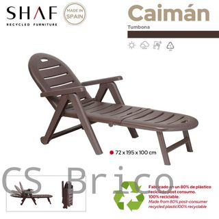 Tumbona Caimán Wengué Abrir galería de fotos del producto para ver fotos reales La tumbona Caimán se caracteriza por un diseño cómodo y duradero y un respaldo ajustable en 4 posiciones para encontrar la postura perfecta de relajación que más apetezca en cada momento. Es fácil de transportar gracias a sus 2 ruedas. Además, es un producto plegable y la mejor opción para ahorrar espacio. Fabricada en España con plástico reciclado que resiste a los rayos UV y las inclemencias meteorológicas. Complemento ideal para la terraza o jardín. *En los colores antracita, blanco, verde y wengué. La tumbona Caimán tiene un cómodo y duradero dise...