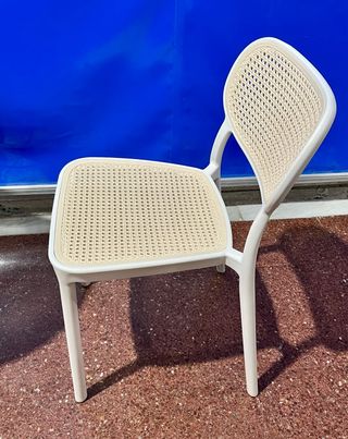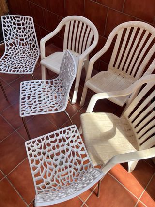 Conjunto de sillas de exterior con un diseño moderno y ligero. Todas por 15€ - Estructura de metal. - Asiento y respaldo de plástico.