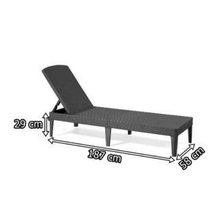 Keter Jaipur-Tumbona de Jardín plegable, para Exterior terrazas, Patios, Jardines, Color Gris Peso del producto8,8 Kilogramos Respaldo reclinable con tres posiciones para mayor confort. Se puede plegar para un mejor almacenaje. Sistema drenaje de agua detrás del respaldo. Mobiliario de jardín con acabado de ratán liso disponible en color grafito. Tumbona Jaipur de exterior: terrazas, patios, jardines y porches.